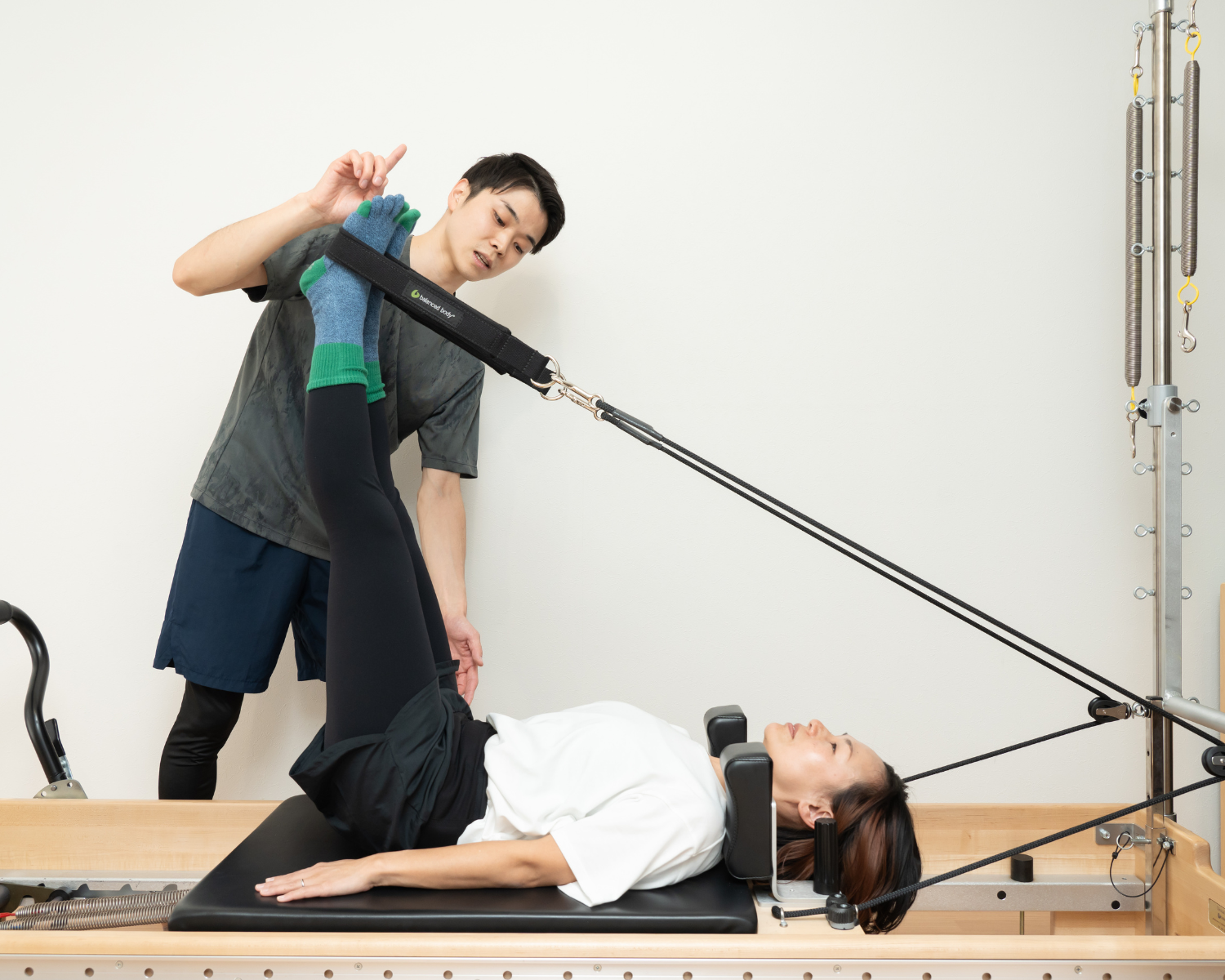 マシンピラティスはハードルが高いと思われる方もいますが、マシンの特徴としてお客様の症状、状態に合わせて負荷を調節出来るため、マットよりもむしろ初心者の方にオススメのエクササイズとなります。