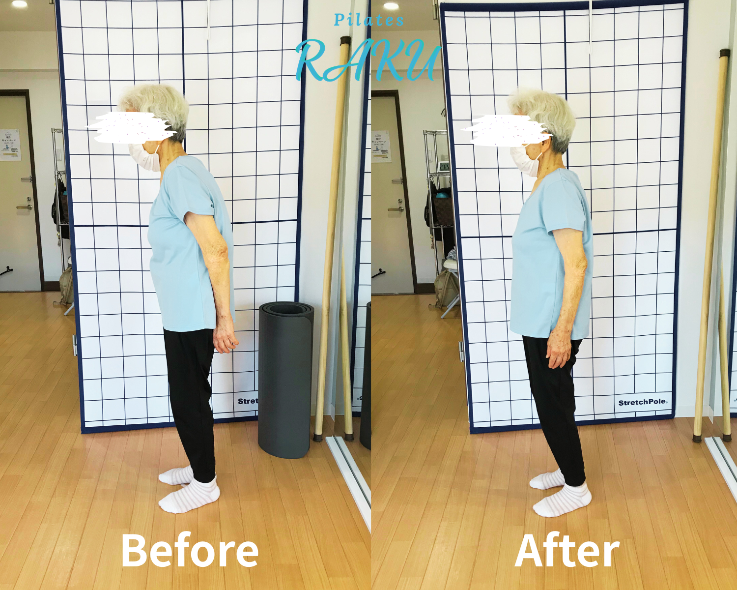 今回のお客様は通われて半年ほど。写真のように、首・背中周りの丸まっている部分がスッキリし、首がキレイに見えてきました。専門的に分析すると、骨盤の位置が修正され、…