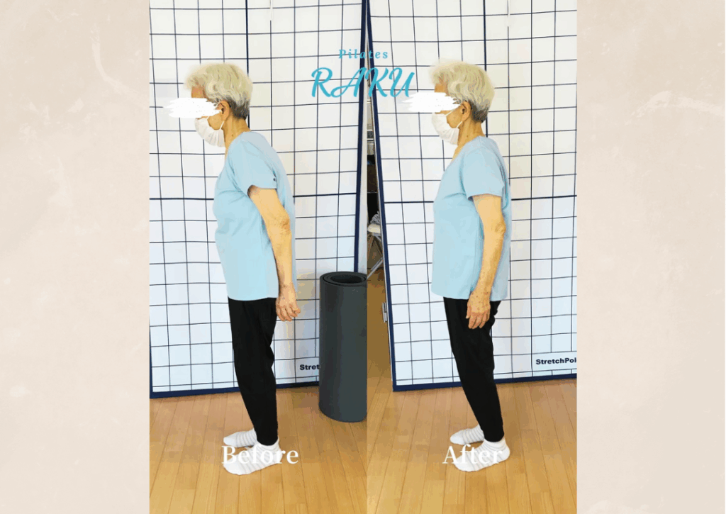 今回は「マシンピラティスによる姿勢改善」についてお話しします。特に年齢を重ねると気になる背中の丸まりや体の歪みですが、正しいアプローチで改善が可能です。実際のビフォーアフターの変化からも、その効果を実感いただけます。