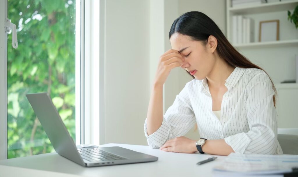パソコン作業が続くと頭が重く感じたり、目の疲れが肩や首にまで広がってつらくなることがあります。こうした不調の背景には、姿勢の崩れと呼吸の浅さが深く関係しています。
