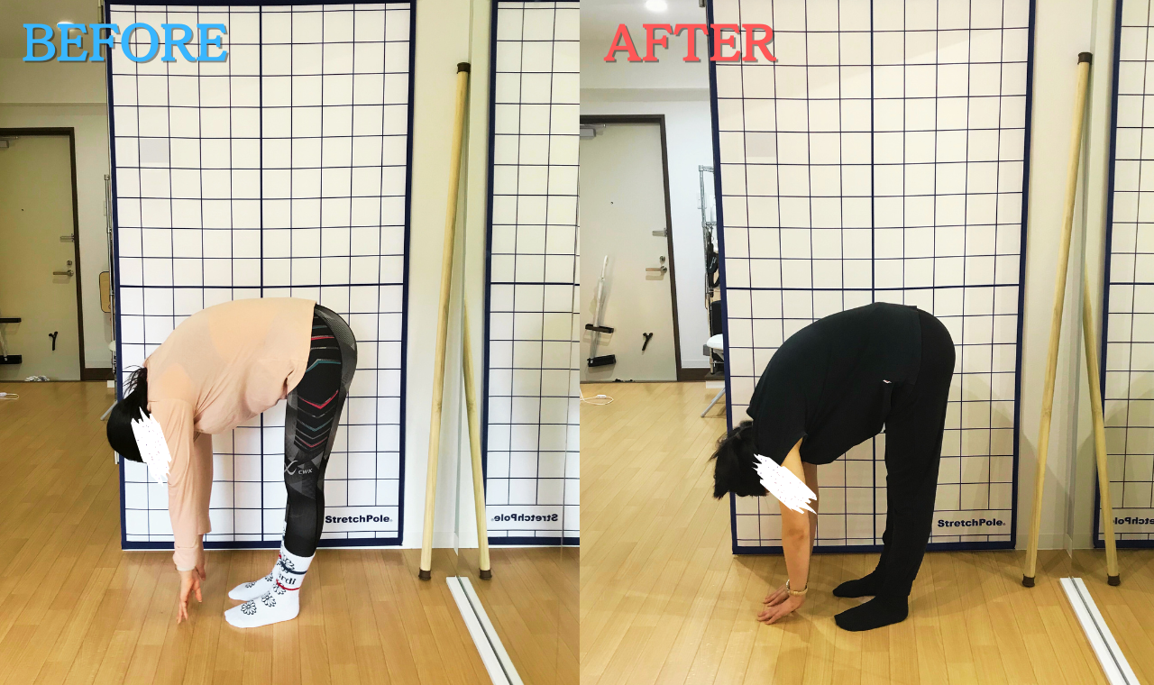 ブログ マシンピラティスで前屈姿勢サポート 写真を見比べると、前屈したときの背中から脚にかけてのラインが変わっているのが分かります! こちらはマシンピラティスのセッション前後を撮影した一例です。 &nbs… 2026年4月1日